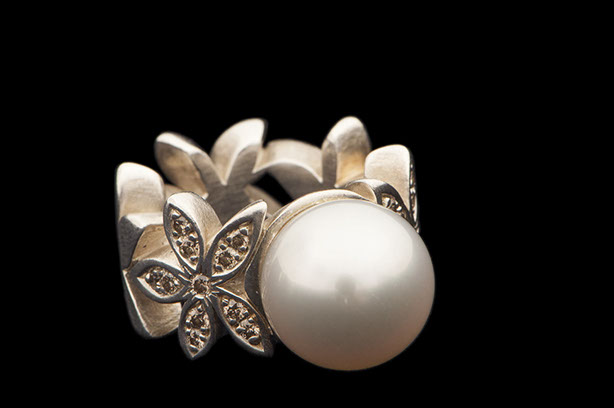 ring, silber 925 mit südseeperle